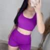 Apresentamos o Conjunto Fitness Aline, a combinação perfeita para quem busca um look vibrante, moderno e extremamente confortável. Composto por um top com alças finas e uma legging com detalhes contrastantes, este conjunto é ideal para treinos intensos, aulas de dança, yoga ou para montar um look fitness casual e elegante.